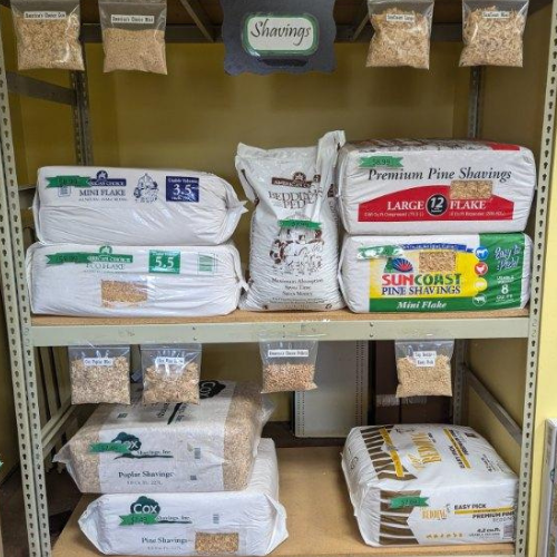 Bedding Brands We Carry: Natures Woodgrain, America’s Choice, Cox, Suncoast, Taylor, America’s Choice, Pelleted pine and straw, and Straw bales.